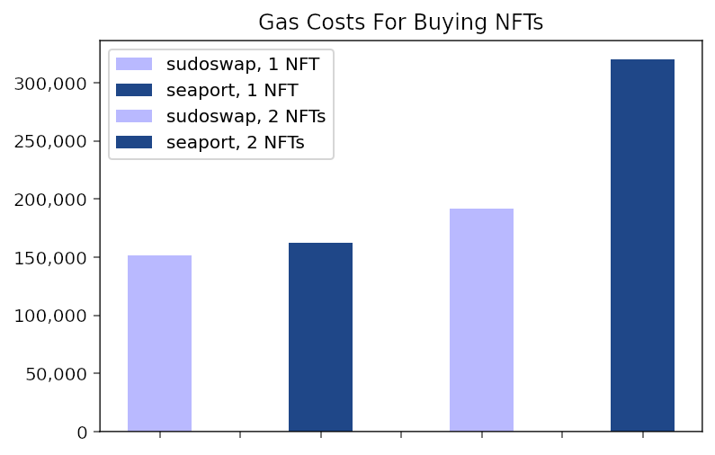 sudoAMM is written from the ground up to be gas-efficient for traders. Trading single NFTs is just as cheap as the most highly-optimized NFT swapping contracts, and when trading NFTs in bulk, sudoAMM can be up to 40% cheaper!