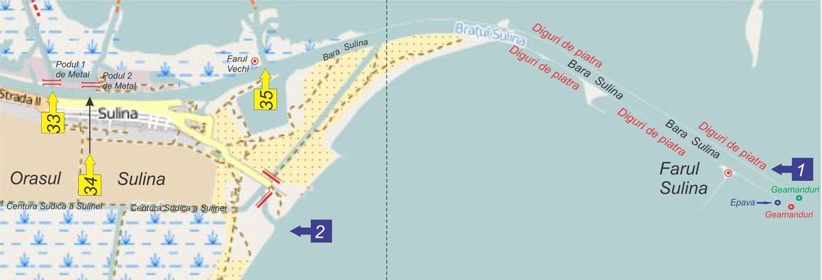 In order relieve pressure from the maritime port of Constanța (600 truck queue), the last leg of the Danube (east of Sulina) will be dredged, increasing navigable depth from 7,2m to 11m, allowing 35k tdw ships to enter up to Sulina Free Zone (point 35👇 to be dredged too)