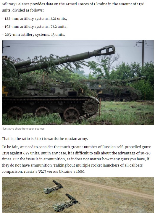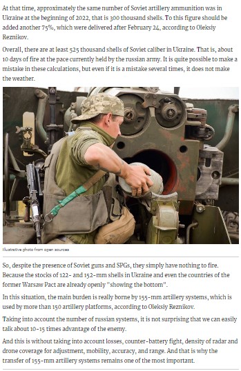 One hundred sixty-ish (~160) US & NATO 155mm guns and nine HIMARS/M270 launchers do not make up for the lost firepower of 700 Ukrainian 152mm guns without ammunition.