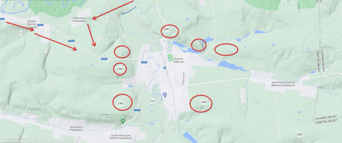 them or capture Sviato-Pokrovske first & Zvanivka in coordination with forces coming from the east. This would be ideal, but we may see RU forces be economical & not attempt this, content to pressure Siversk from 3 sides & capture it, even if UA forces flee southwards. To be cont