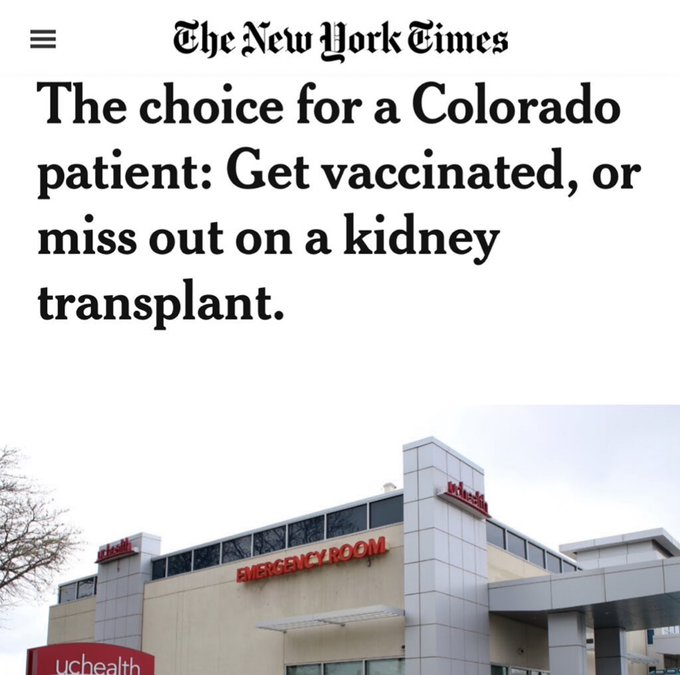 @francoislegault 15/ "Le choix pour ce patient du Colorado: se faire vacciner, ou ne pas recevoir de nouveau rein."