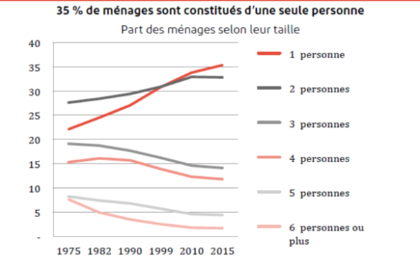 C’est devenu le groupe démographique majoritaire parmi les ménages français depuis 2010. La famille standard qu’on a en tête, 2 parents et 2 enfants, c’est 12 % des ménages.