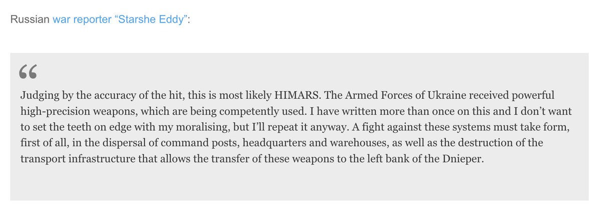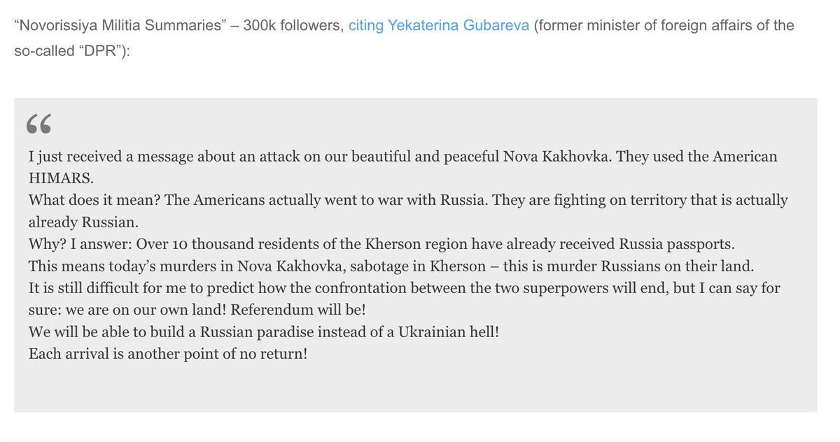 Pro-Russian bloggers and commentators reacting to the Nova Kakhovka HIMARS strike.