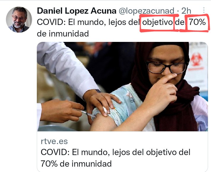 Porque en España ya estamos 16 puntos por encima de eso, en el 86% de supuestamente vacunados, y el propio miserable de Acuña nos dice que estamos en una Ola subestimada, por no llevar mascarillas