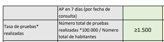A la vez, el Bloque de Capacidad de Diagnóstico Precoz exige realizar AL MENOS 1.500 test semanales por cada 100K habitantes para la Normalidad