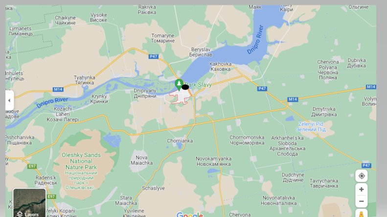 going down further we see the depot was in the town of Nova Kahovka, right where the railway line has its one crossing of the Dnipro River. Here is an excellent geolocation.