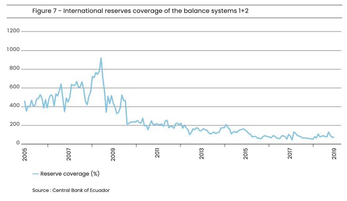 No caso do Equador as regras foram abandonadas em meados de 2009 e o banco central deixou de ser independente no caminho. Omesmo fez empréstimos ao governo sem ter um crescimento do PIB para acompanhar o que levou a queima das reservas internacionais.