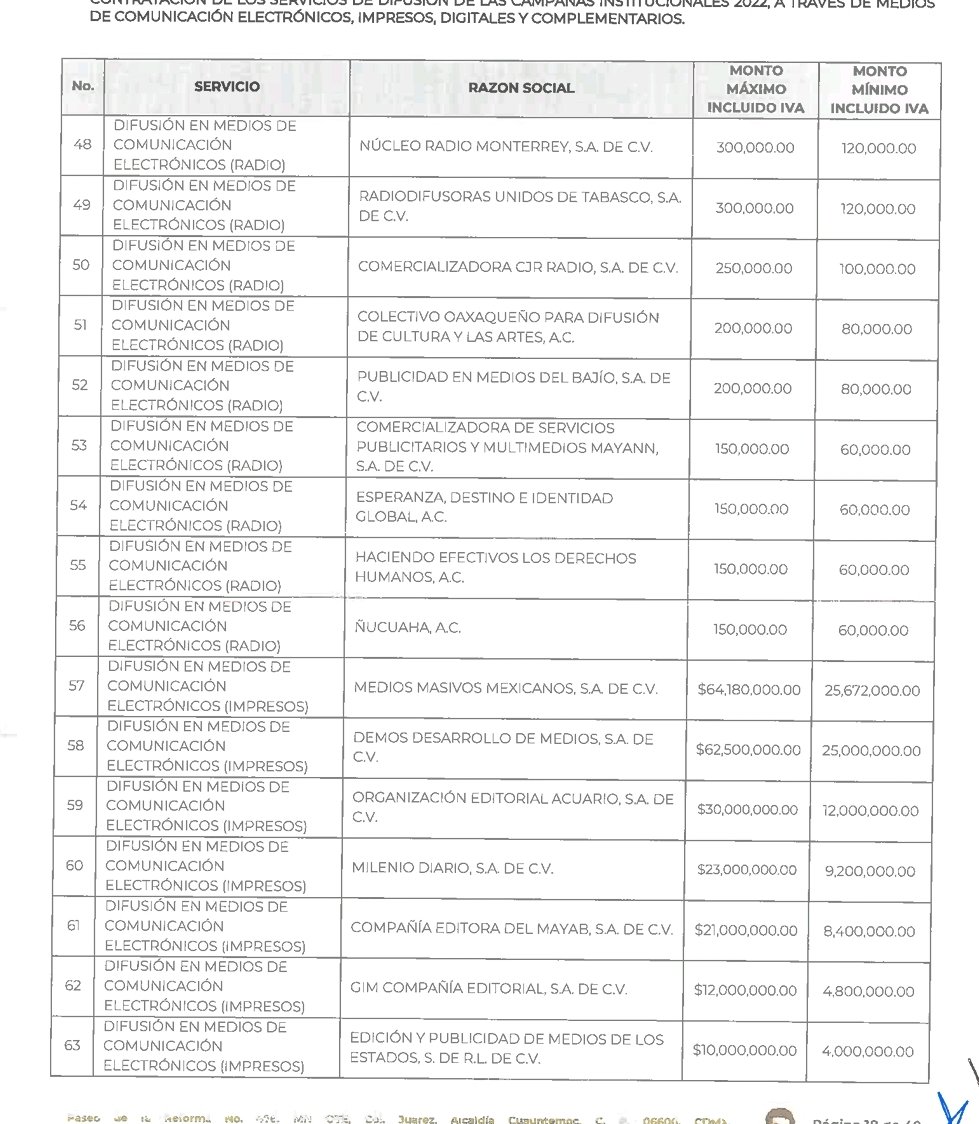 Los principales beneficiados: Televisa con 75 millones, Tv Azteca con 66 millones, seguido del diario favorito La Jornada (demos), que recibe 65 MDP.