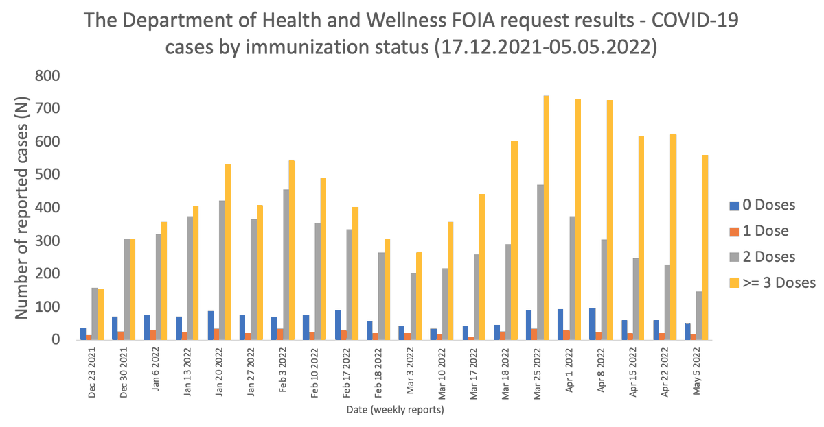 1 / Nombre de cas hebdomadaires de #COVID19 par statut vaccinal du 17/12/2021 au 05/05/2022