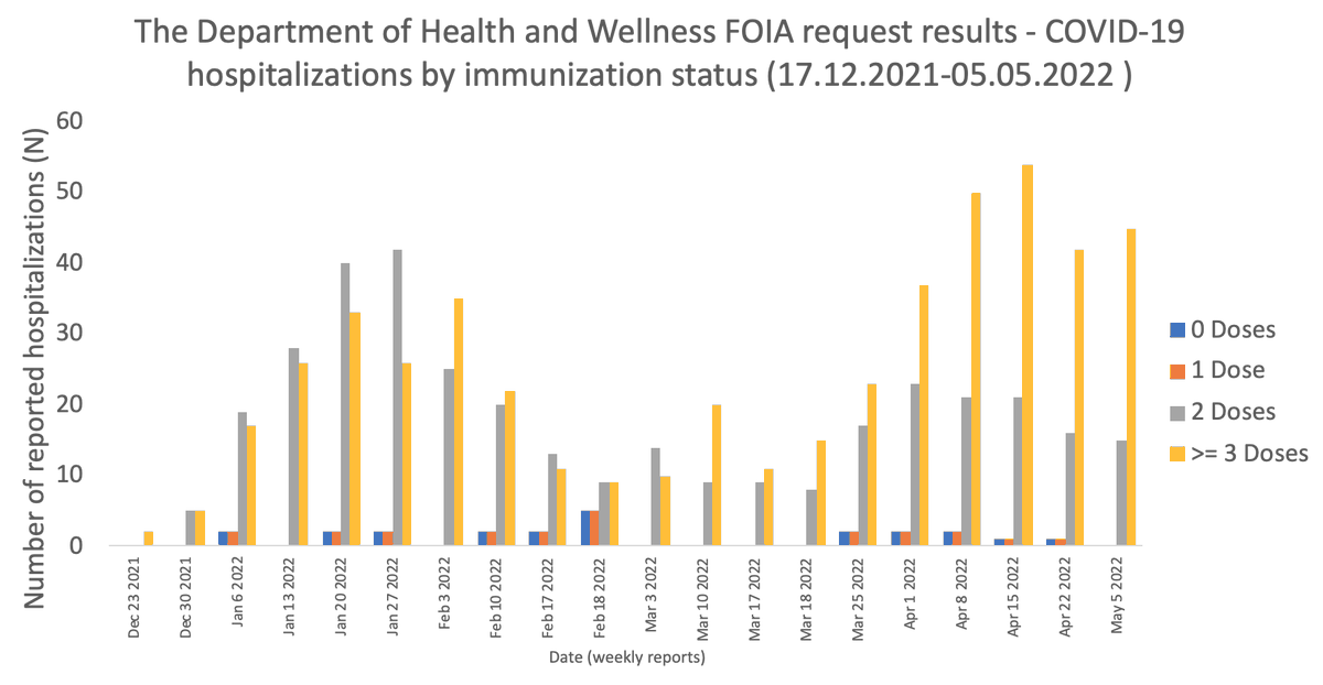 2 / Nombre d'hospitalisations hebdomadaires pour #COVID19 par statut vaccinal du 17/12/2021 au 05/05/2022
