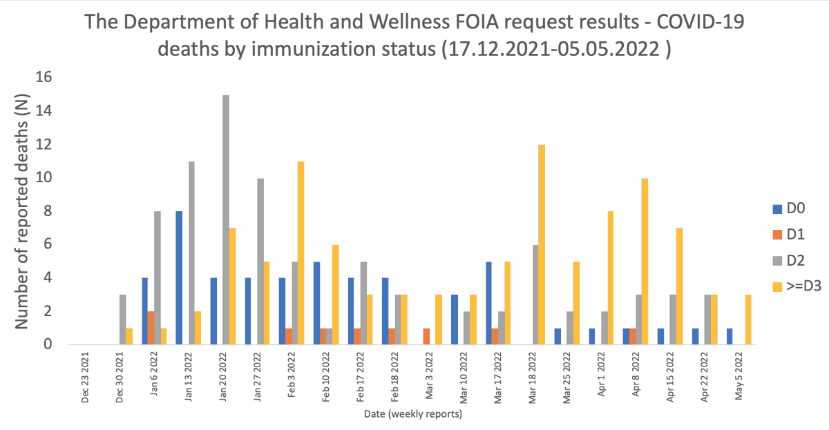3 / Nombre de décès hebdomadaires pour #COVID19 par statut vaccinal du 17/12/2021 au 05/05/2022