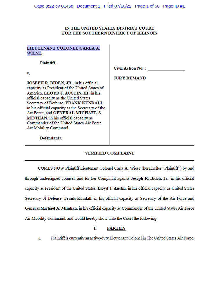Accusés : Joe Biden, Lloyd Austin (Pentagone), Frank Kendall (secrétaire de l'USAF), Michael Minihan (commandant en chef de l'USAF)