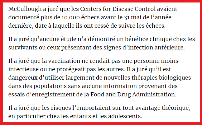 Son avocat, Russell Newman, en a profité pour contester la valeur des vaccins qui n'empêchent pas la transmission et a repris les déclarations faites sous serment par le Dr Peter McCullough 👇