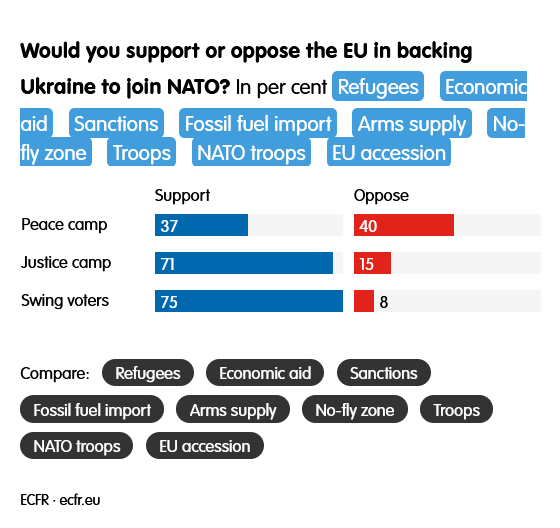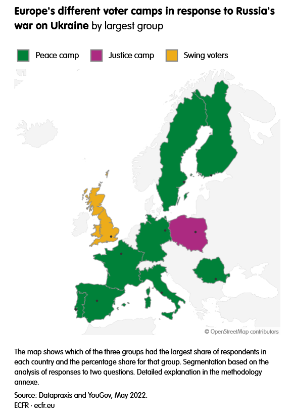 Pretty interesting polling with 8000 sampled across 10 EU nations, nailing down some of the gradations of European sentiment regarding the current conflict. Specifically regarding the goals of the conflict - "peace" or "justice" for Ukraine. /1 ecfr.eu/publication/pe…