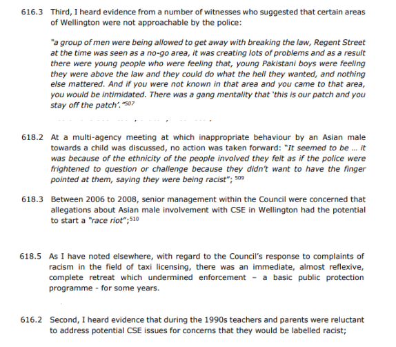 The report confirms that the majority of the CSE suspects in Telford were ‘of southern Asian heritage’.