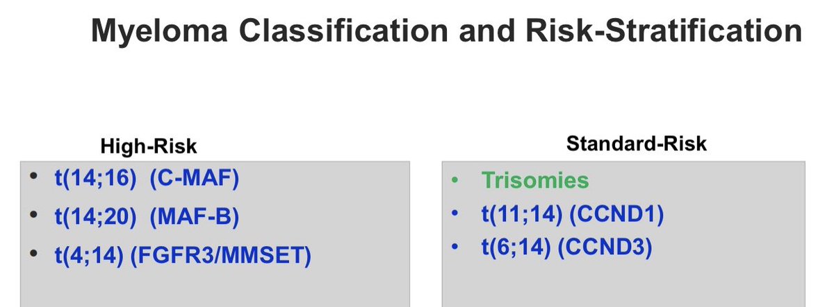 The 2nd hit occurs at a rate of 1% per year. The nature of the second hit likely varies by one of the 6 main primary cytogenetic types of myeloma (see below).