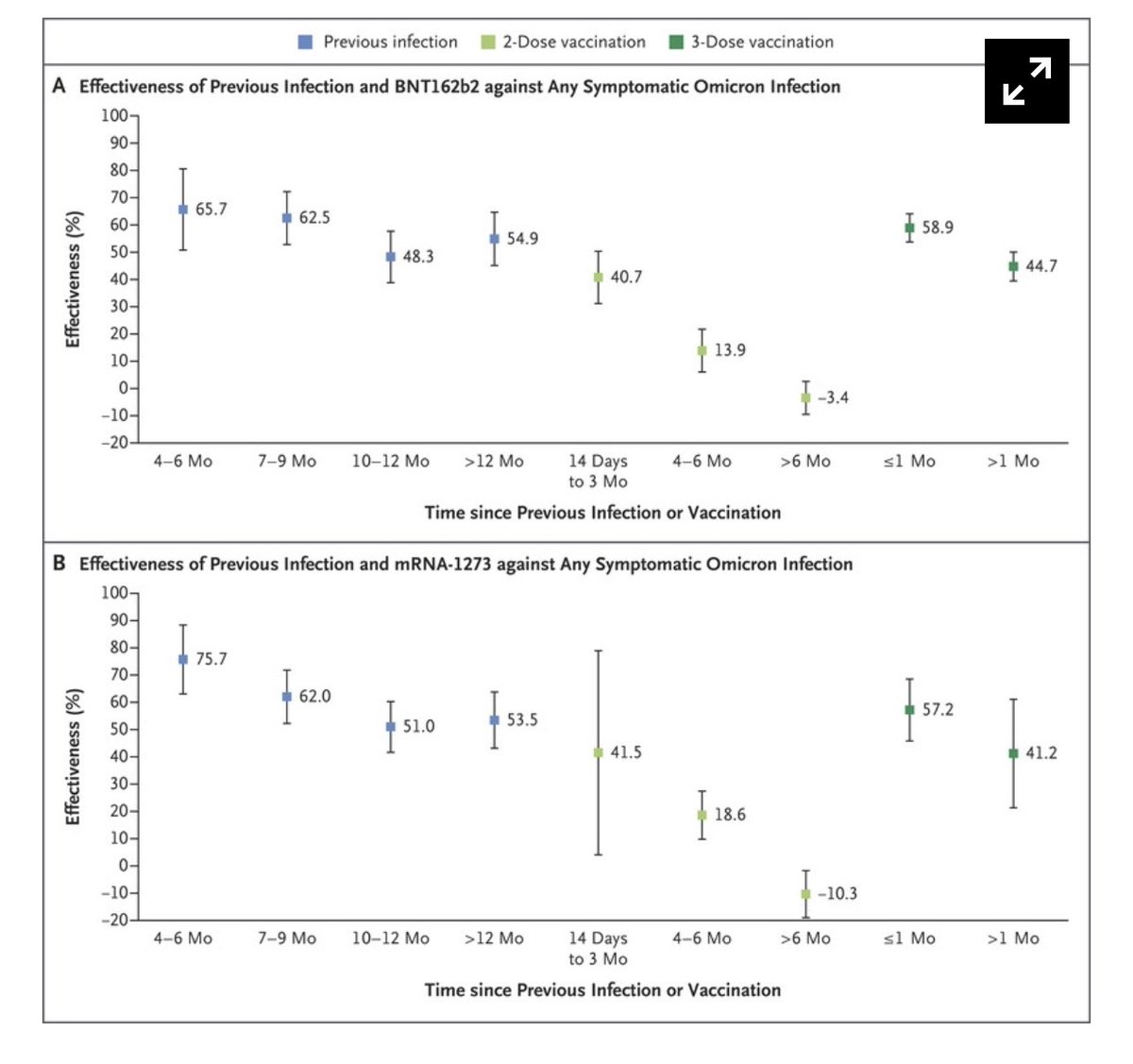 3/ Protection as a result of prior infection or vaccines does wane over time. Less so after prior Covid. Quite a bit more after just 2 doses of vaccine.
