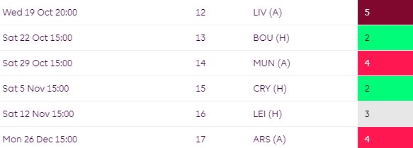 City (H), Liverpool (A) and a London Derby against West Ham (A) are sandwiched in between fixtures against Palace (H) & Fulham (H).