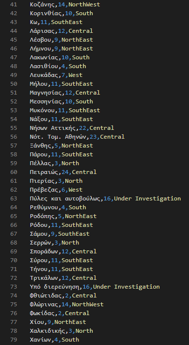 Πρώτα δίνουμε σε όλες τις περιοχές γεωγραφικό προσδιορισμό (7 geo-κατηγορίες, και το id της Περιφέρειας ώστε να μπορέσουμε μετά να τις group-άρουμε, θα δ)