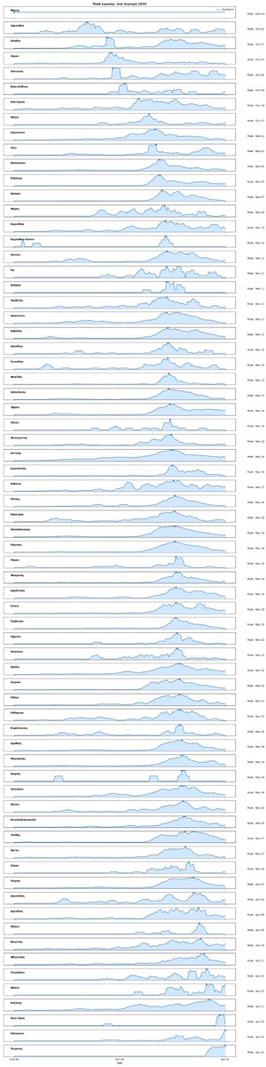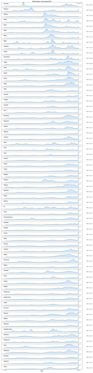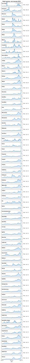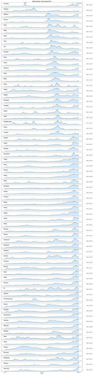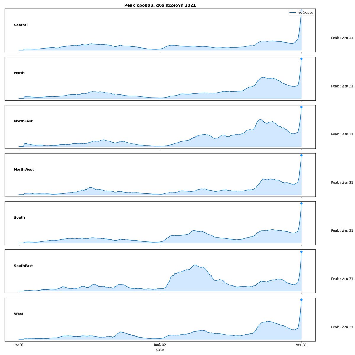 Στο 2021 έχουμε το εξής πρόβλημα. Επειδή τον Δεκέμβρη ήρθε η Όμικρον που σάρωσε τα πάντα, τα περισσότερα Peaks των περιοχών βρίσκονται στις 31/12 οπότε δεν μπορούμε να δούμε τι ακριβώς συνέβη με την Δέλτα. Για να έχουμε μια καλύτερη εικόνα, θα αφαιρέσω τον μήνα και συνεχίζουμε👇
