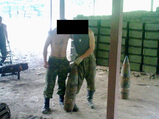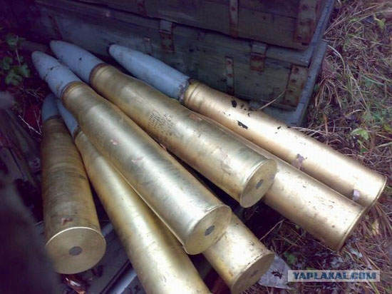 Another view of 125mm tank shells with their propellent cases.