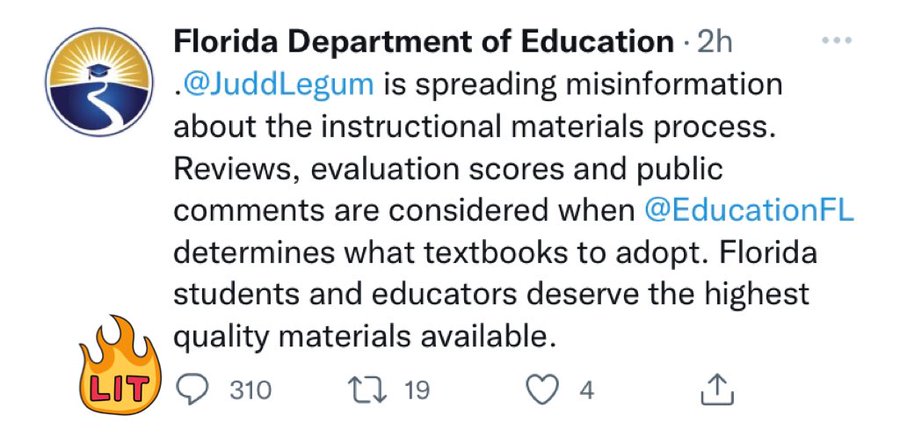 @GovRonDeSantis@RonDeSantisFL 4. But in May, in response to a public records request, the Florida Department of Education, released the actually reviews of these textbooks.
