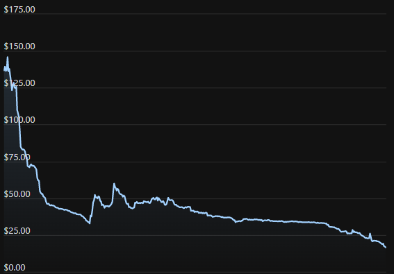 As tokens unlock, sell pressure quickly overwhelms buy pressure and the token chart looks like this.