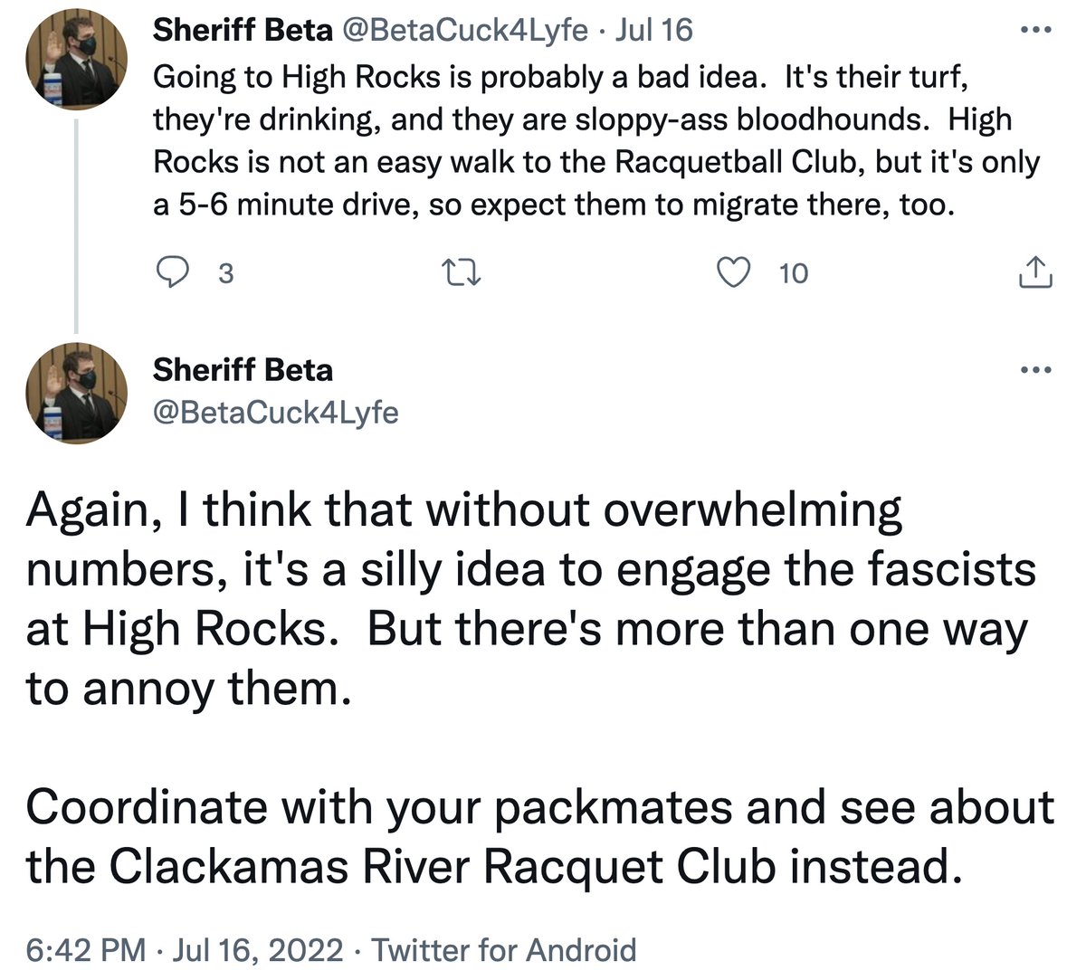 Update about #Antifa direct actions in Oregon today: They're calling for reinforcements after hearing rumors that bikers may also show up. In Salem, they're going to target the Honky Tonk Bar. In Gladstone, they're going after Clackamas River Racquet Club.