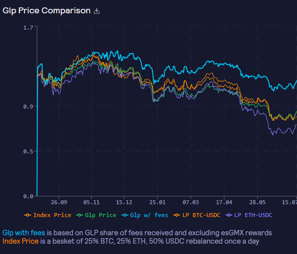 @UmamiFinance 1) Market exposure. By holding GLP you are indirectly exposed to the basket of assets held in GMX's liquidity pool, so market downturns can hurt GLP's price.