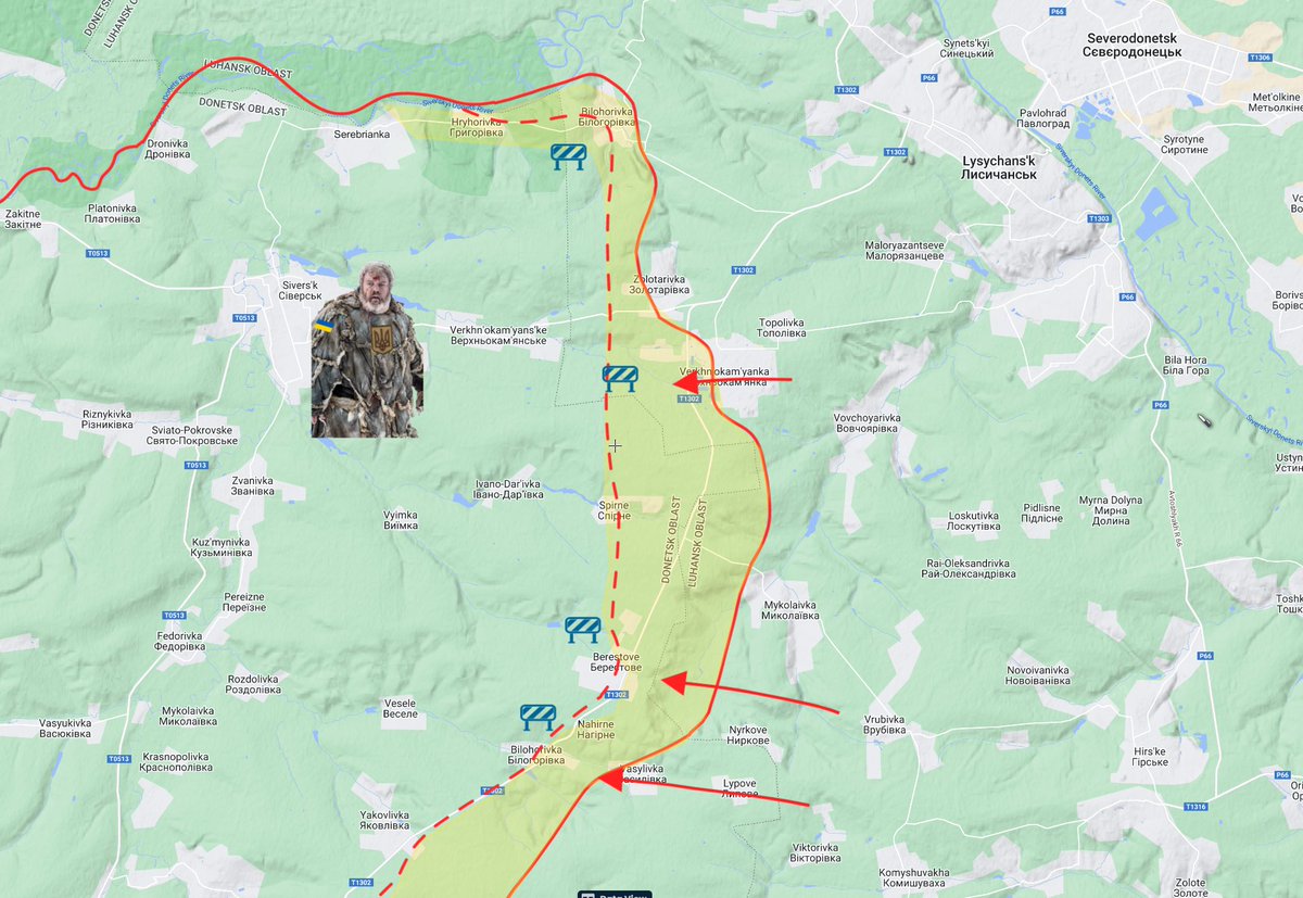 Ukraine is holding the door in the Sivers'k direction. RuAF are stopped in the area of Bilohorivka (L oblast) and Verkhn'okam'yanka. RU forces have been failing to cross the T1302 in the area of Berestove and Bilohorivka (D oblast) for over a months not, that did not change today