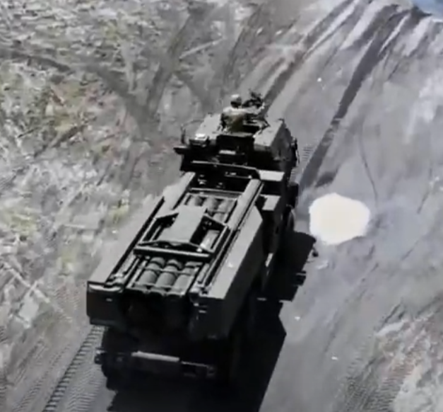 Even if the commercial drone footage quality exceeds the RU military grade footage by decades, you can clearly see on these images that what we see in the video is not a HIMARS.