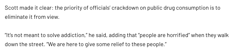 The level of deception and disinformation from San Francisco's Drug War proponents is getting out of hand. For over a year, they've said their attacks on the poor were about treatment and compassion. Now, even the chief of police acknowledges it was a lie. missionlocal.org/2023/06/police…