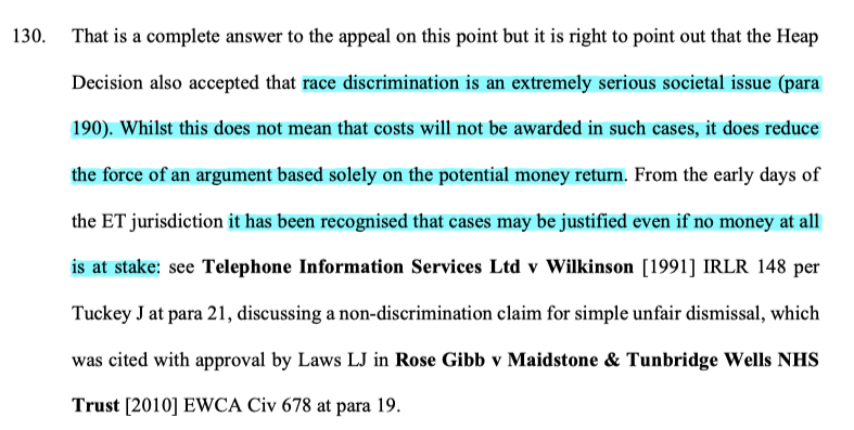 3/ The EAT (Griffiths J) started by bemoaning how great the resources taken up by the case, & how litigation taking up the most resources seem to create their own chain reaction of further & more strenuous fighting. (It was a case in which FDA raised 50 points on costs alone!)