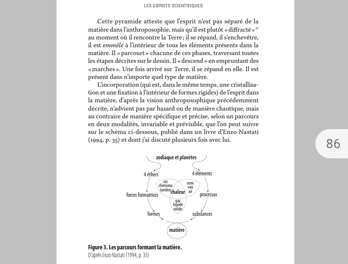 Après la lecture de ce chapitre, je suis quand même impressionnée qu'on puisse exposer les croyances anthroposophiques sans recul critique dans un ouvrage universitaire. Ça me semble être un cas d'entrisme manifeste. Et c'est très inquiétant.