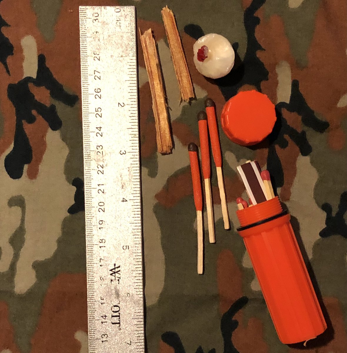 •2 types of matches: Coughlan’s waterproof & UCO Storm