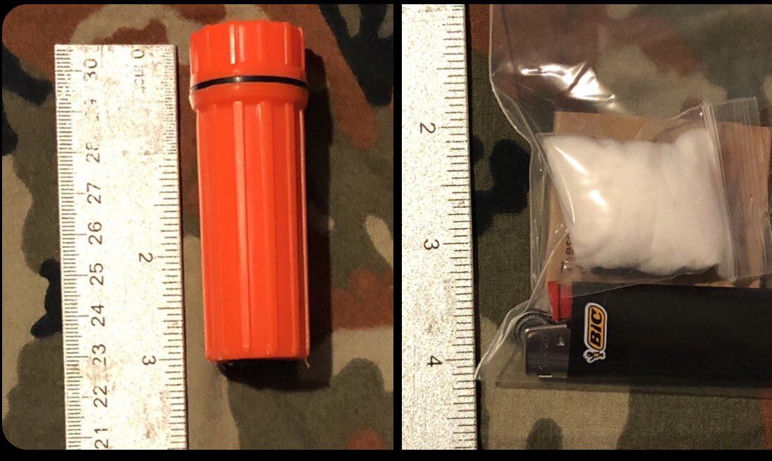 •Vaseline impregnated tinder rolled in 2x layer of cling wrap