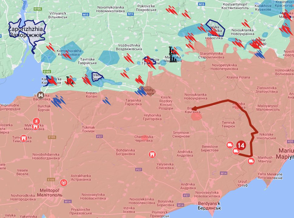 Russians are moving 1000 men plus all of their equipment from Demyanivka, Starodubivka, and Zakharivka towards Zaporizhzhia (14).