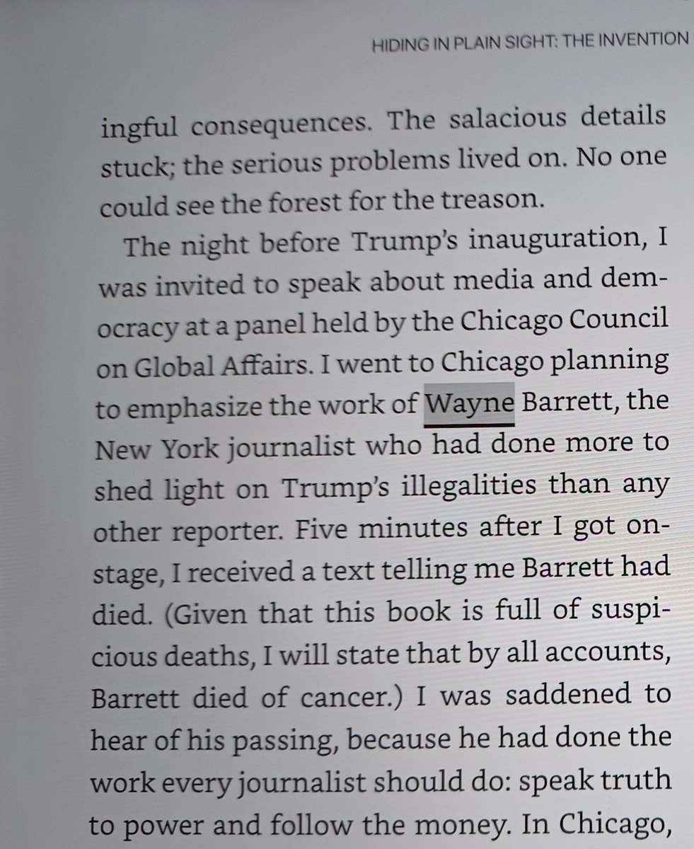 It is so common for someone in Donald Trump's circle to die in a suspicious or violent way that when I wrote my book HIDING IN PLAIN SIGHT, I had to add a disclaimer that Wayne Barrett, a journalist Trump despised, died of natural causes: