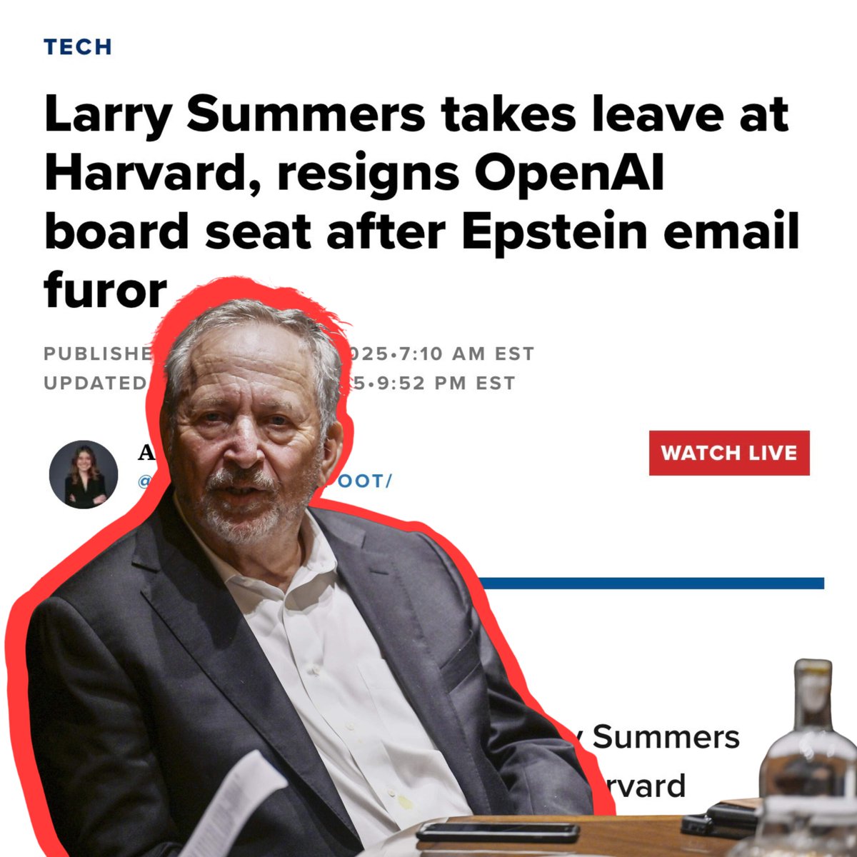 2. Larry Summers, former U.S. Secretary of the Treasury: Larry Summers stepped down from the board of OpenAI over his connections to Epstein. He was also placed on leave from his teaching and leadership roles at Harvard University.