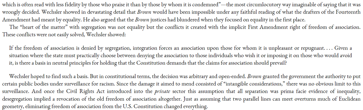 Brown v Board was wrongly decided on political grounds and revolutionized the US by overturning the right to freedom of association and granting USG arbitrary powers in the process.