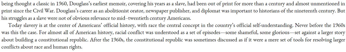 Before Civil Rights, race issues were only one part in many of America's historical self-conception. Now, race is paramount.