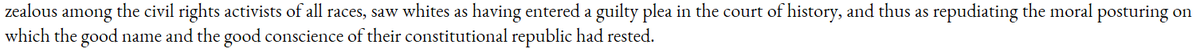 Northern whites viewed themselves as magnanimously helping blacks; blacks viewed whites as having admitted their eternal blood-guilt before history. A lesson for "allies" of various sorts.