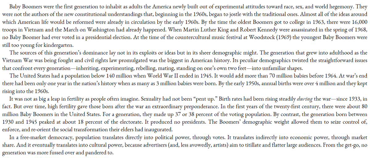 One thing the e-right often gets wrong is that the Boomers were very much not responsible for the 60's revolution. Most of them were in grade school when it was decided. Will probably do another thread on this myself later.