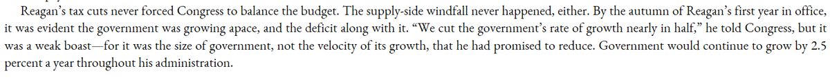 Lots of (leftist academic created) myths about Reaganite neoliberalism slashing the state. In reality, all he did was slow its growth.