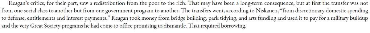 Reagan's colossal borrowing, undertaken at the height of the Baby Boom's productive years, was mostly to be able to simultaneously pay for Great Society social programs, Civil Rights, and military build up. RIP seed corn.