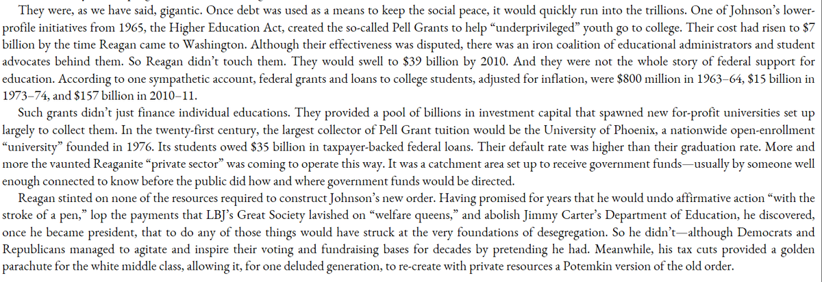 USG gives colleges hundreds of billions a year, partly thanks to Reagan. Much of the post-Reagan economy is pretty much just rent-seeking on govt favor. Debt let Boomers ignore this for a generation. The bill is coming due.