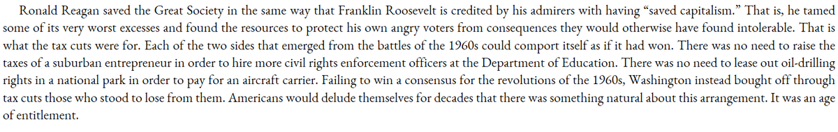 Caldwell is very harsh on Reagan, who talked a good game about rolling back much of the 60s (and won on that basis), but when in power mostly just consolidated and even expanded it. Shades of Trump.