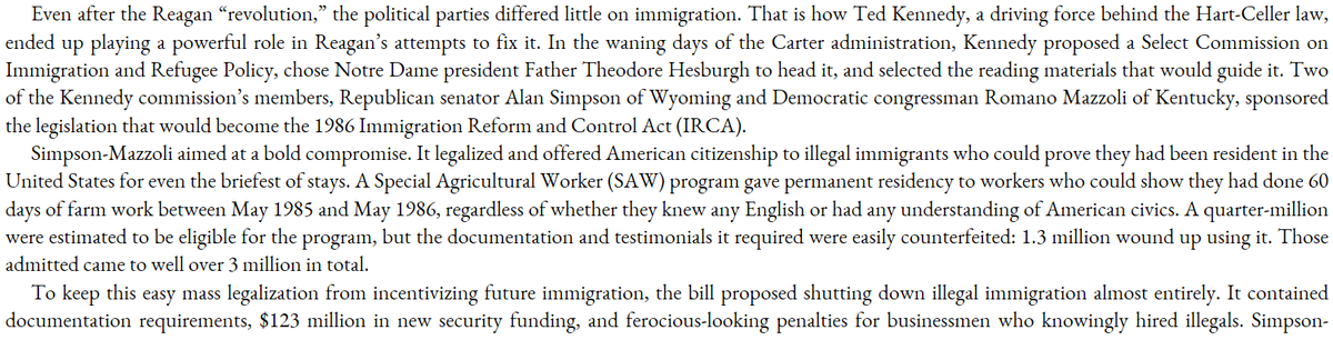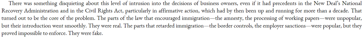 The Reagan amnesty (IRCA) was actually composed of two parts: a wildly popular increase in immigration law enforcement combined with an extremely unpopular amnesty. Guess which part of the law was actually enforced? (Democracy BTFO).