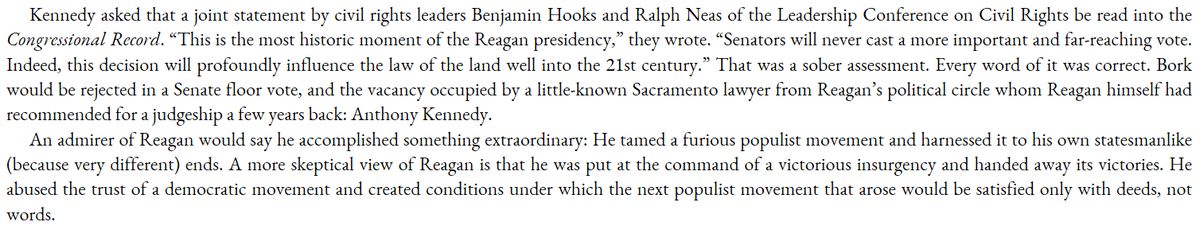 After Ted Kennedy sank the Bork nomination, Reagan responded by nominating... Anthony Kennedy. Oops.