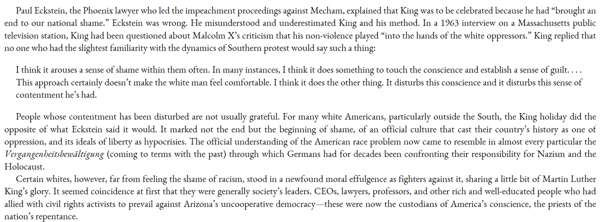 MLK day marked the transformation of white American's history to a more... German form, emphasizing white's guilt and evil as the main thread of American historical memory.